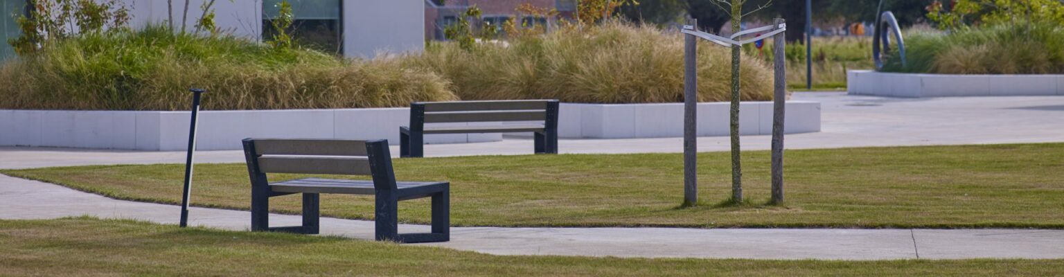 De kunststof parkbank Matrix biedt ultieme duurzaamheid en elegantie.