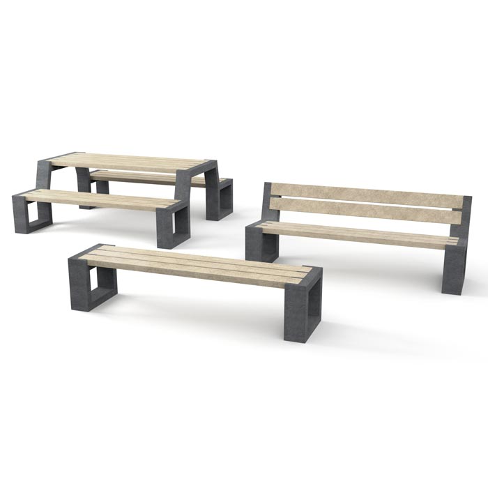 Parkbanken - straatmeubilair van massief regeneraat. Rotvrij, grafittipoof en splintervrij en door en door gekleurd straatmeubilair - parkbanken.