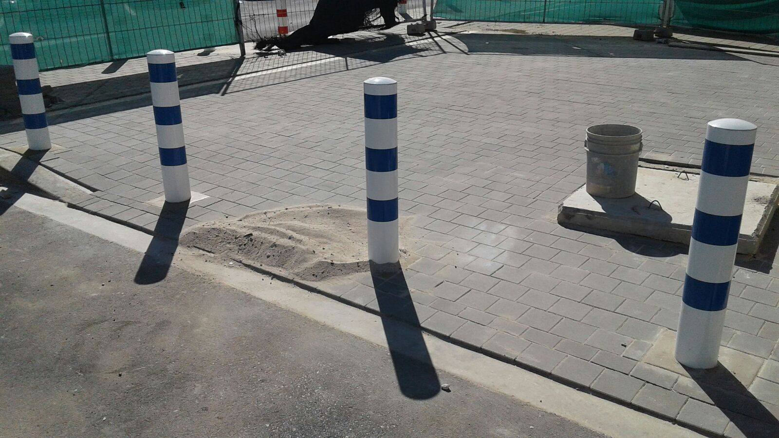 • de uitvoering van deze zware afzetpalen met opgeschroefde kop, zodat deze na plaatsing met beton gevuld kunnen worden.