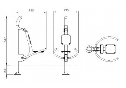 Buitenfitnesstoestel Seated Rower, technische tekening.