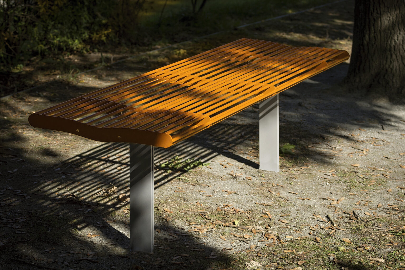 Straatmeubilair, parkbank naar een ontwerp van Stéphane Chapelet. Als het ook mooi mag zijn.