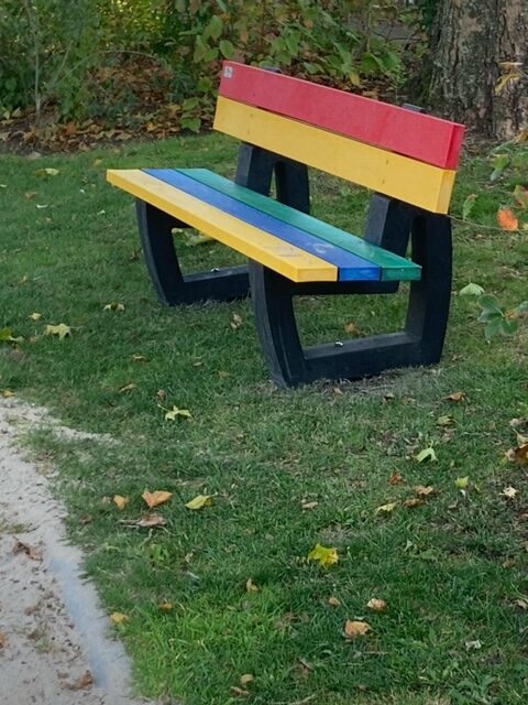Nieuw in ons assortiment: de Regenboog-bank! Een kleurrijke, uitnodigende variant van ons populaire model parkbank Bonn met rugleuning. Deze stevige parkbank van door-en-door gekleurd massief kunststof is een blikvanger in elke buitenruimte. Met zijn vrolijke kleurencombinatie en duurzame ontwerp is deze bank ideaal voor parken, schoolpleinen, speeltuinen en openbare ruimtes.
