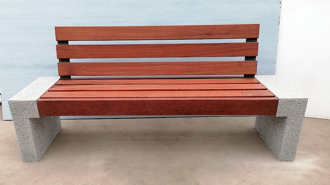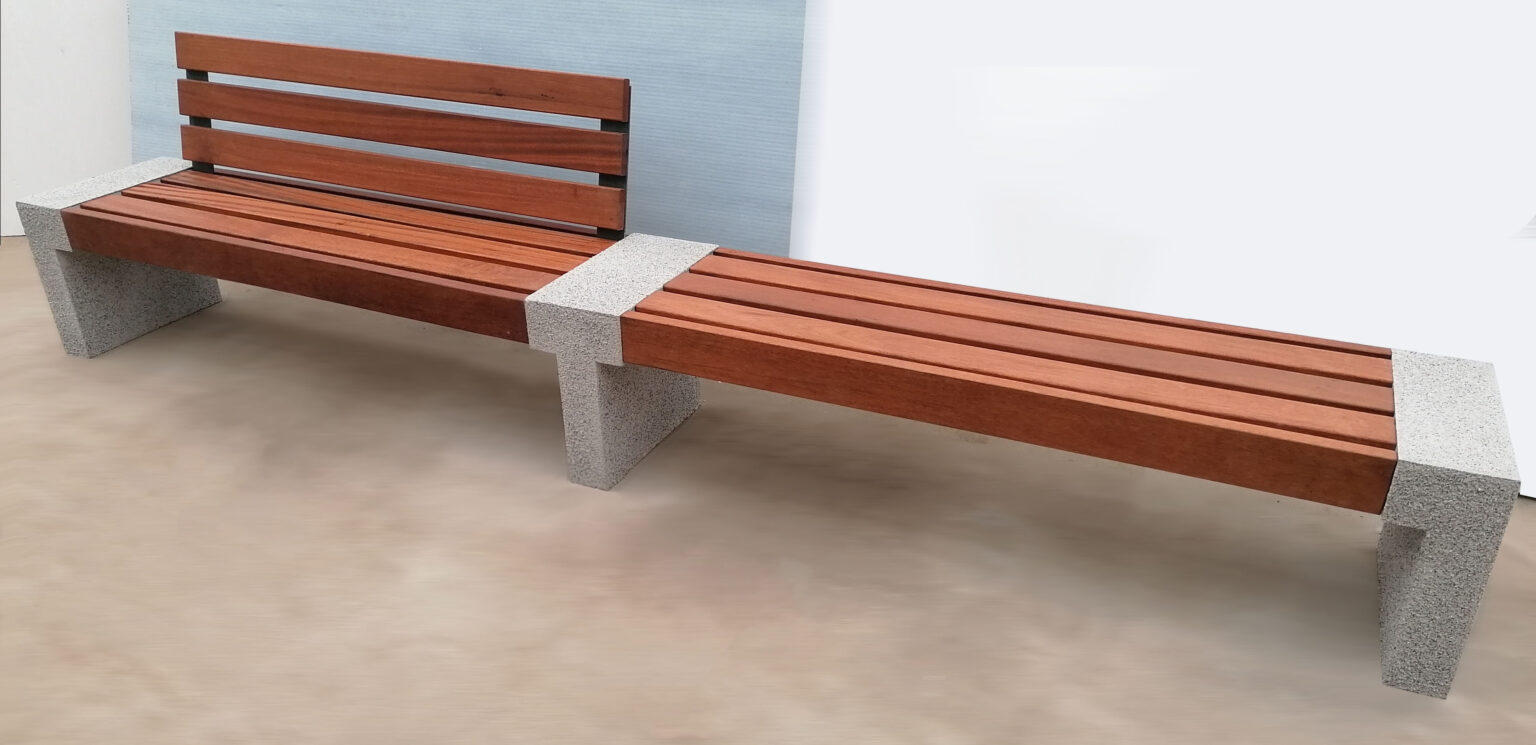 Parkbank Betla, duurzame betonsteunen met diverse houtopties. Met of zonde leuning.