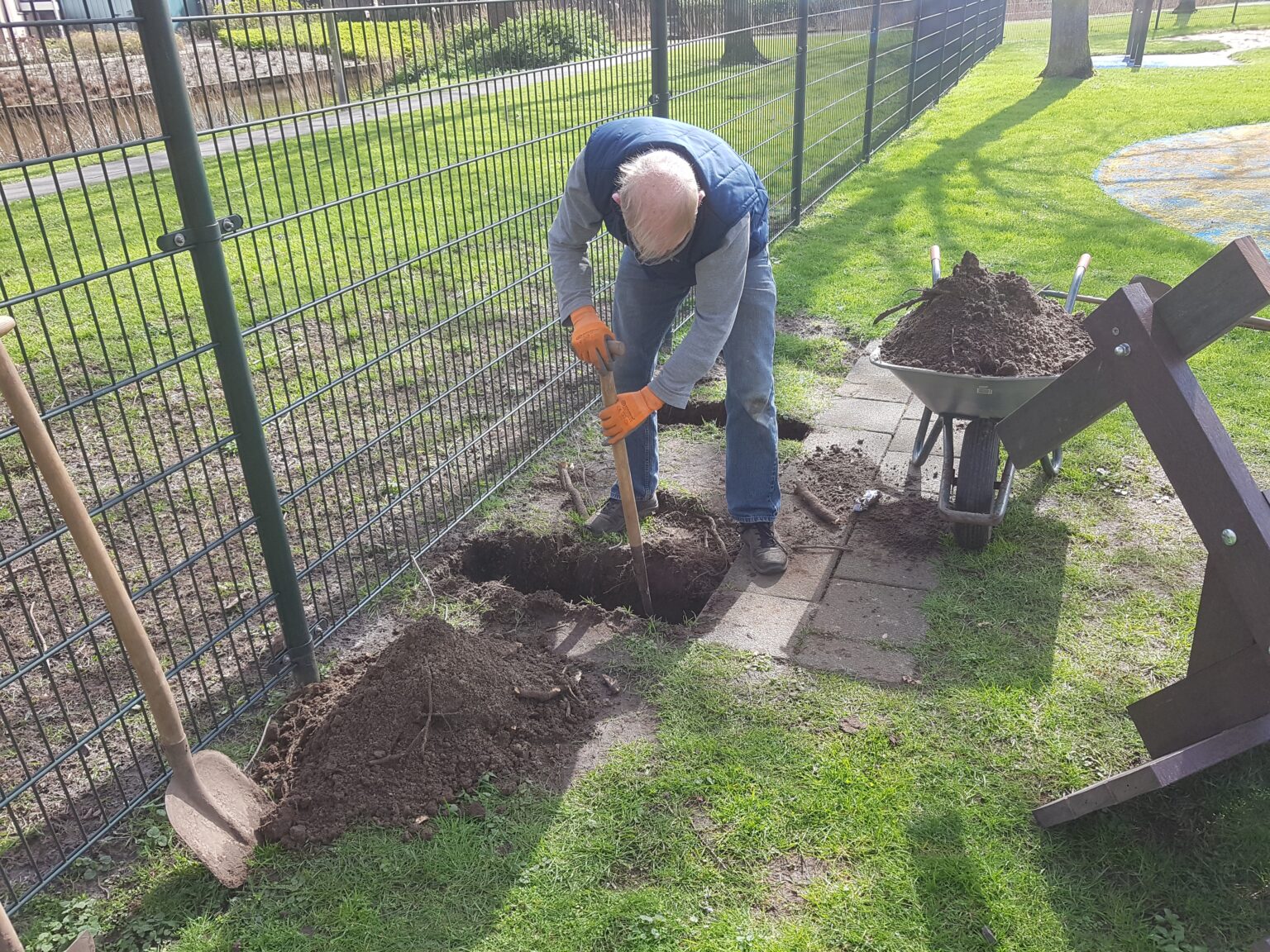 Eenvoudige verankering: De stevige voeten kunnen ca. 43 cm ingegraven worden voor een stabiele plaatsing op het maaiveld.