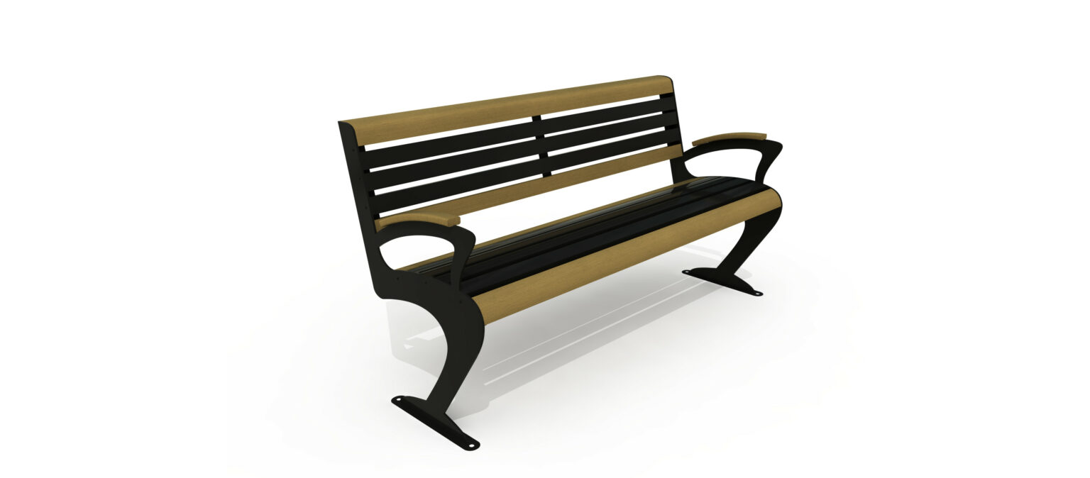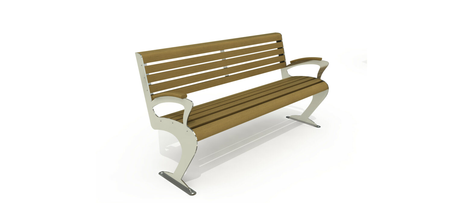 Een fraai vormgegeven parkbank, verkrijgbaar in verschillende uitvoeringen. Hoogwaardige materialen en voor een vriendelijke prijs.