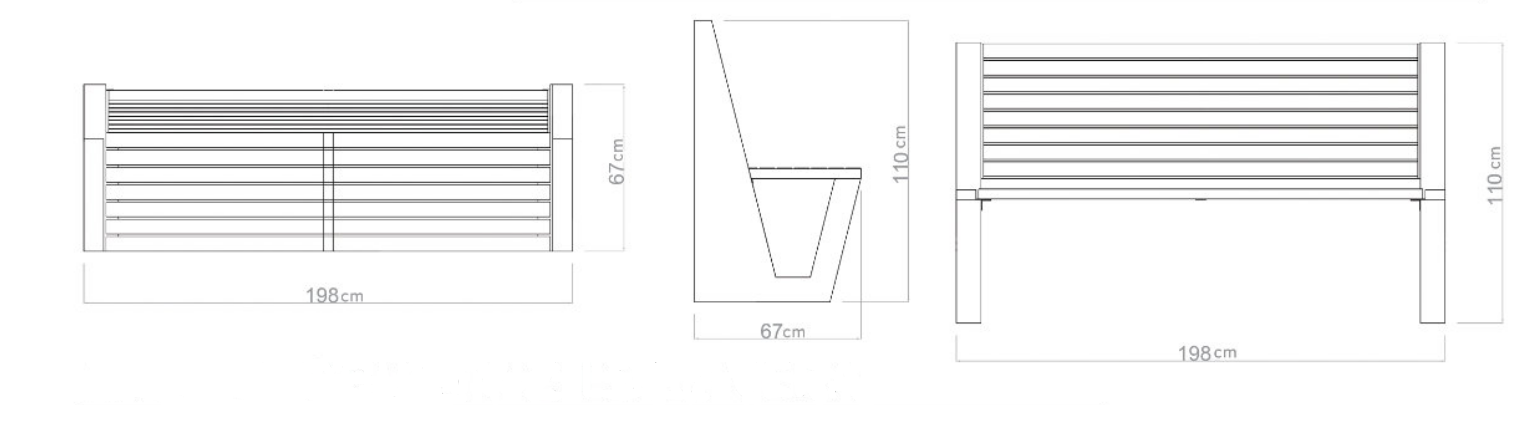 Lengte parkbank Prato ca. 2000mm.