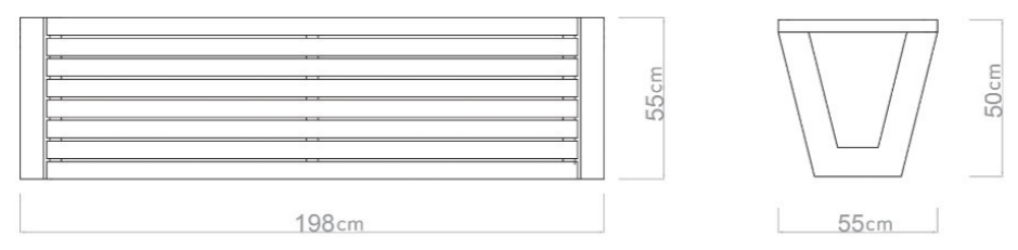 Het beton is optioneel afwerkt met coating. Voor de betonnen banksteunen kunt bovendien kiezen voor ruw beton of glad afgewerkt beton. Verkrijgbaar met of zonder leuning. Totale lengte van 198 cm. Deze parkbanken zijn qua uitstraling absoluut een aanwinst voor openbare en semi-openbare ruimtes.
