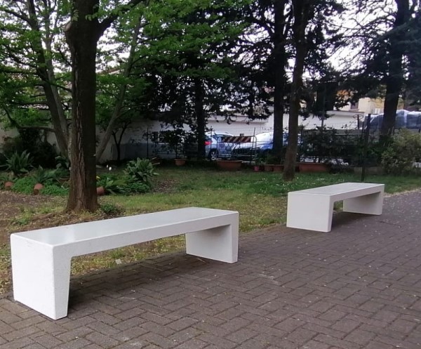 Bank Versilia is gemaakt van een betonmengsel met wapening. wit 525 cement, wit marmergrit, wit marmerpoeder, verdichtings- en vloeimiddelen om het waterpercentage te verminderen.