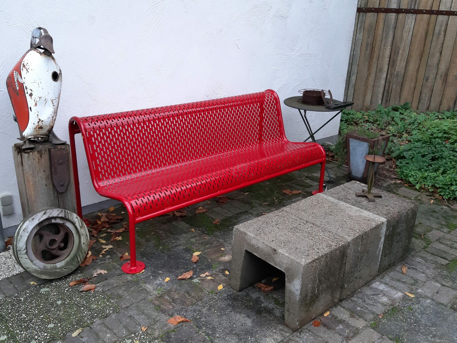 - Zitting en leuning: geperforeerd staal