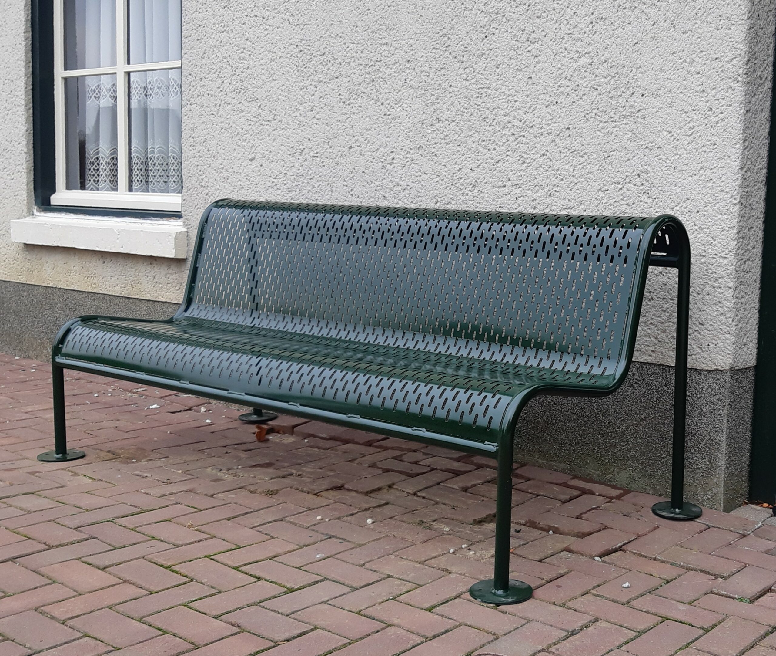 Alle ijzerwerk volbad thermisch verzinkt en afgewerkt met een duurzame geharde poedercoating, hierdoor krijgen vuil en water nauwelijks vat op deze bank. Diverse ral kleuren mogelijk. Ideaal stads- en straatmeubilair.