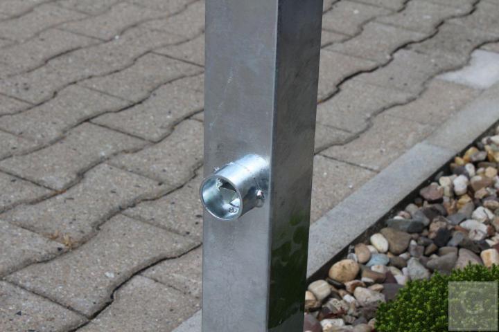 - uitvoering met cilinderslot en profielsleutel. Voorzien van voetplaat, 100 x 150mm. Bij afname meerdere afzetpalen is levering met identieke profiel-cilindersloten mogelijk.