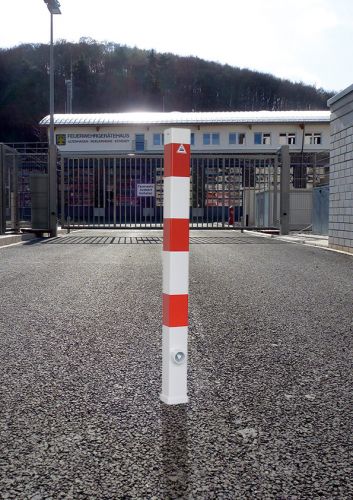 Vaste parkeerpaal. Vierkant: 70 x 70 mm. Eenvoudige en verrassend voordelige antiparkeerpalen, Zeer duurzaam. Leverbaar met voetplaat en als inbettonneerbare afzetpaal.