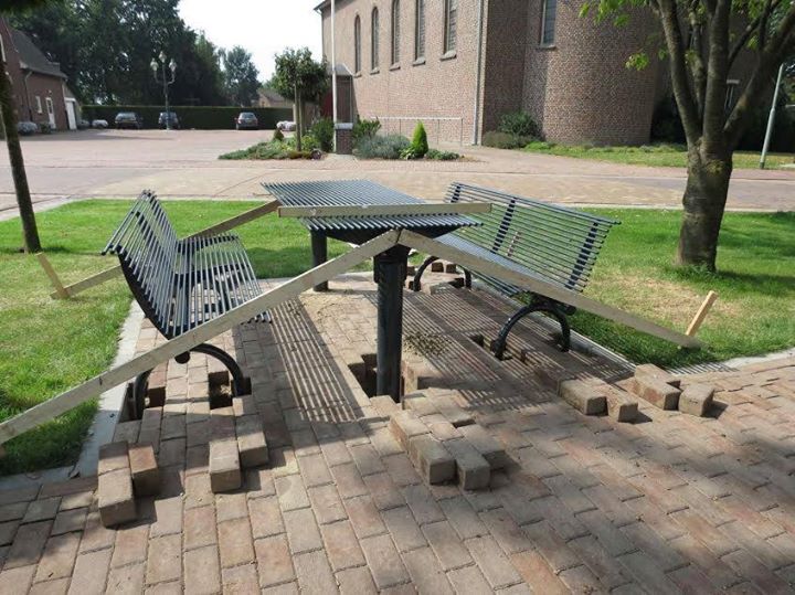 Ik wil jullie laten weten dat de parkbanken keurig voor onze entree staan en we daar leuke reacties over krijgen.