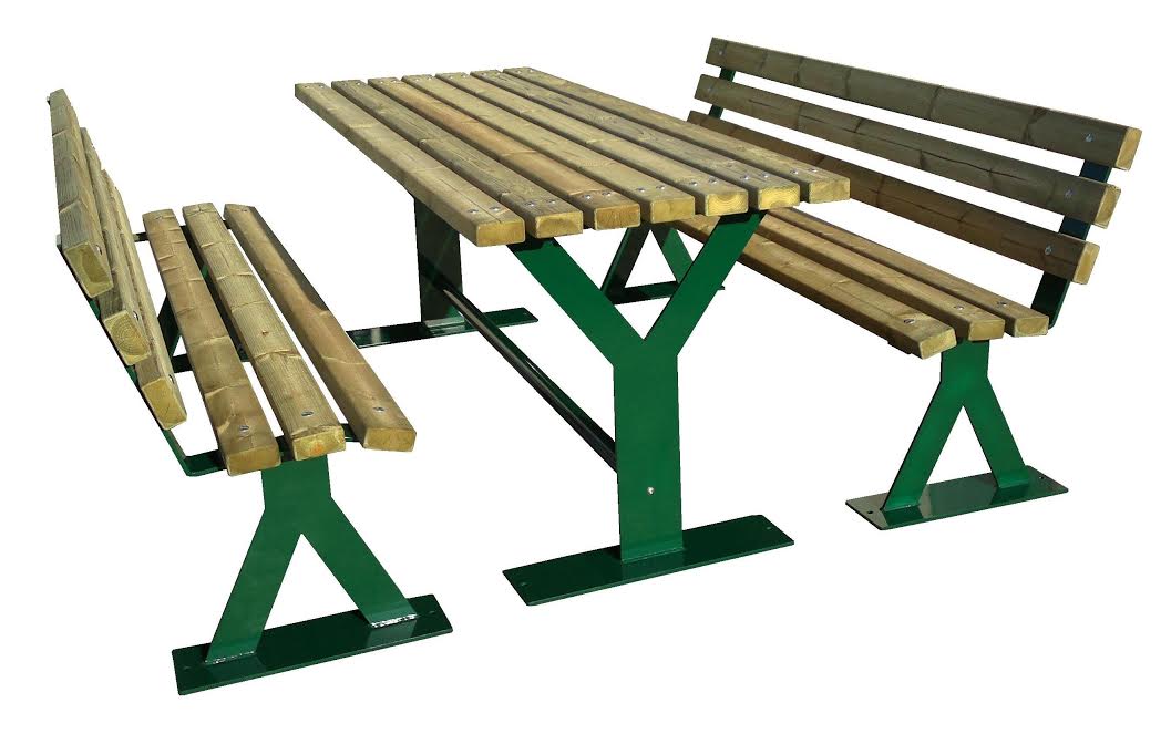 Standaard geleverd als picknicktafel met 2 banken met rugleuning.