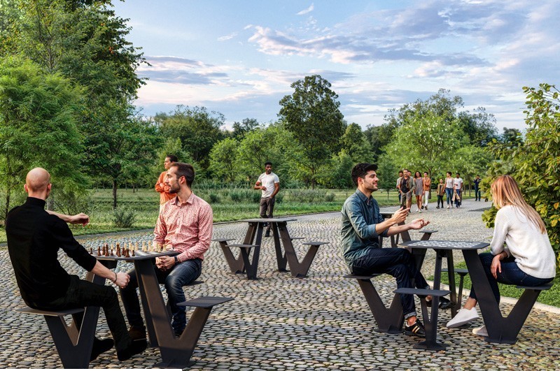 de multifunctionele Viktoria picknicktafel is ook de Viktoria schaaktafel met zitplaatsen beschikbaar. Deze stijlvolle en robuuste tafel is perfect voor openbare ruimtes, kantoren, cafés, onderwijsinstellingen, pleinen en parken. Dankzij de stevige en ergonomisch gevormde constructie biedt de tafel optimaal comfort voor iedereen. Het tafelblad is uitgevoerd als schaakbord, waardoor het niet alleen een plek is om te ontspannen en bij te praten, maar ook een uitnodiging vormt voor een strategisch potje schaak. De specificaties zijn hetzelfde als de multifunctionele Viktoria picknicktafel.