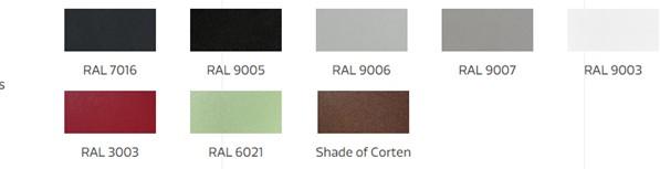 Leverbaar in verzinkt en gecoat staal en in een moderne Corten-uitvoering.