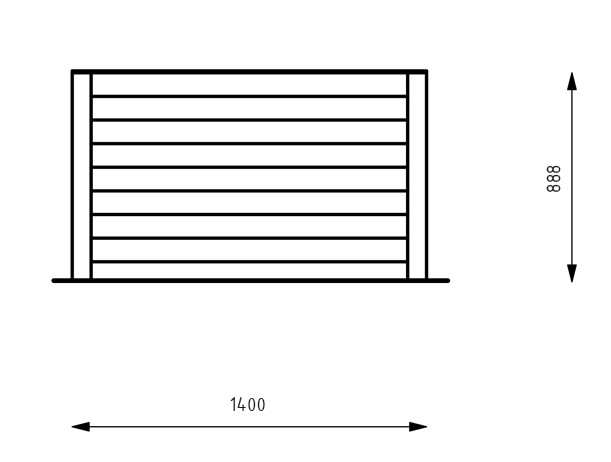 Buitenmaats: L x B x H:1.400×1.400×888 mm.