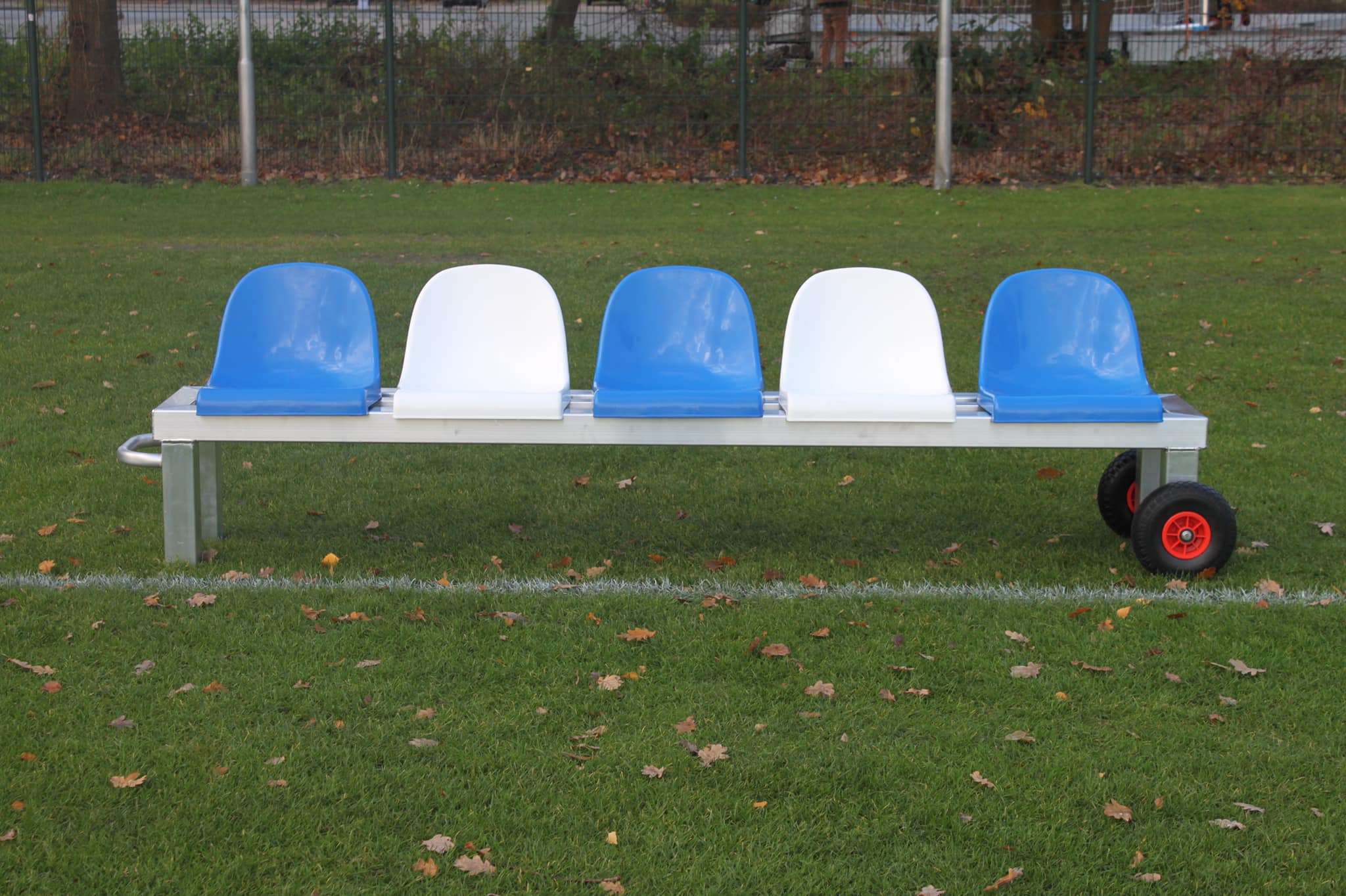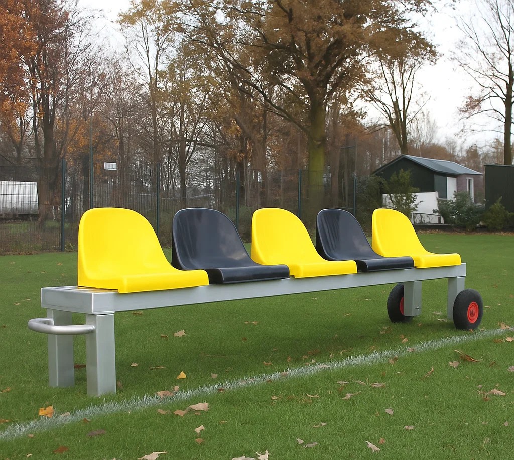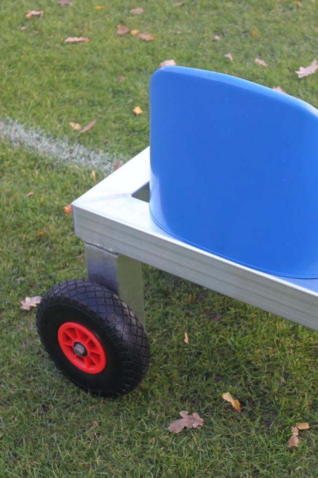 Onze reservebanken zijn de ideale oplossing voor langs de lijn en zijn beschikbaar in verschillende lengtes, met 4, 5 of 6 zitplaatsen. Gemaakt van volledig gelast aluminium, zijn deze banken licht van gewicht en eenvoudig te verplaatsen. Ze zijn uitgerust met kuipstoelen in uw clubkleuren en grote, soepel lopende transportwielen met schuimvulling, wat zorgt voor gebruiksgemak en duurzaamheid. Perfect voor gebruik naast uw dugouts en bij evenementen!