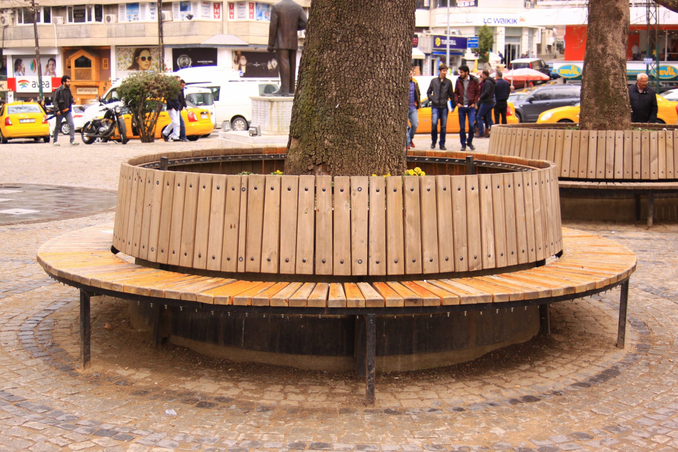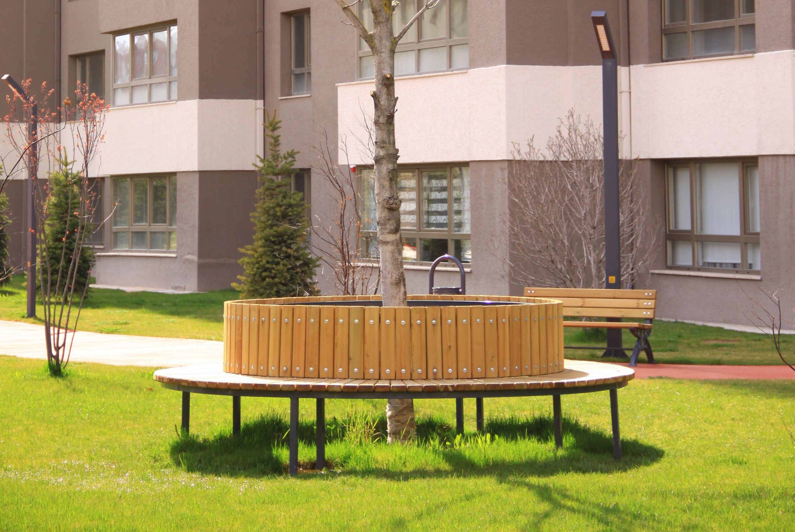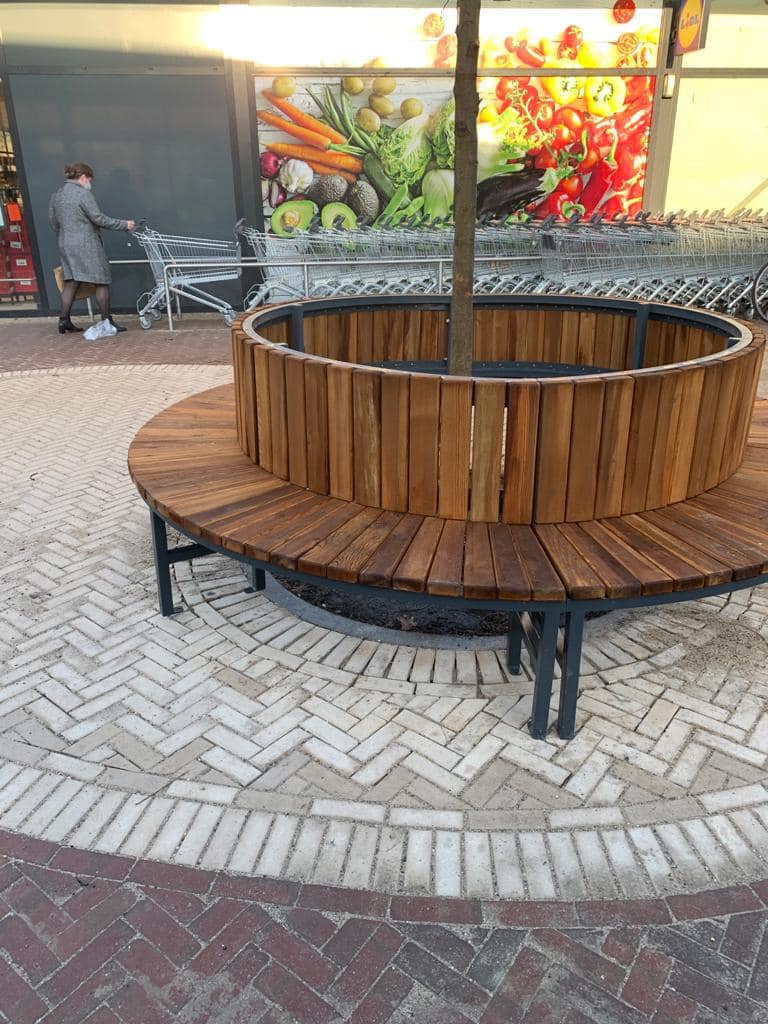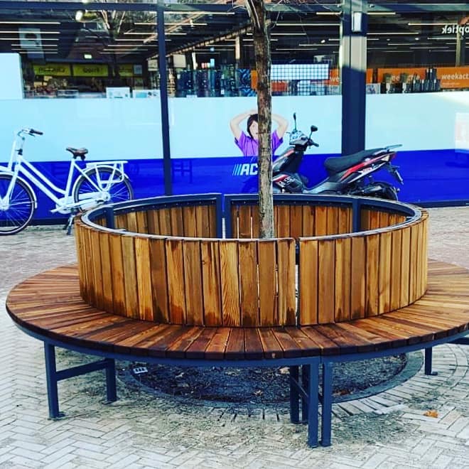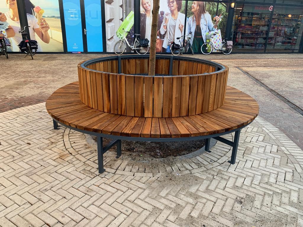 - Volledig ronde uitvoering (360°): Een volledig ronde bank die rondom de boom plaats biedt voor meerdere mensen.