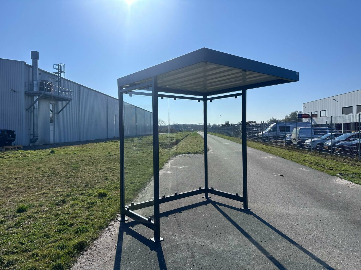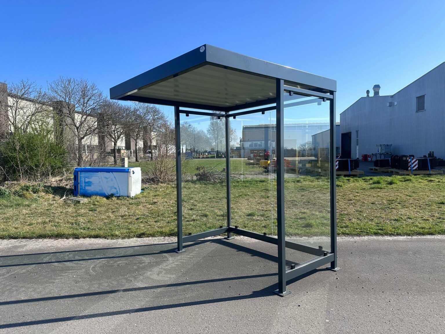 Rookoverkapping Palermo P2. Ideaal als rookabri en automaten overkapping. Afgebeeld de 2 meter uitvoering met zitbankje.