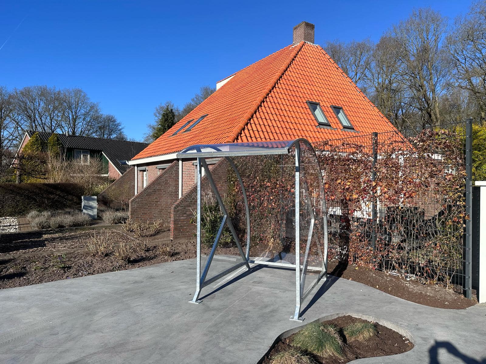 Snelle levering/montage! Verzinkt frame, desgewenst gepoedercoat in ral kleur naar keuze. Transparante kap slagvast uv-bestendig transparant polycarbonaat.