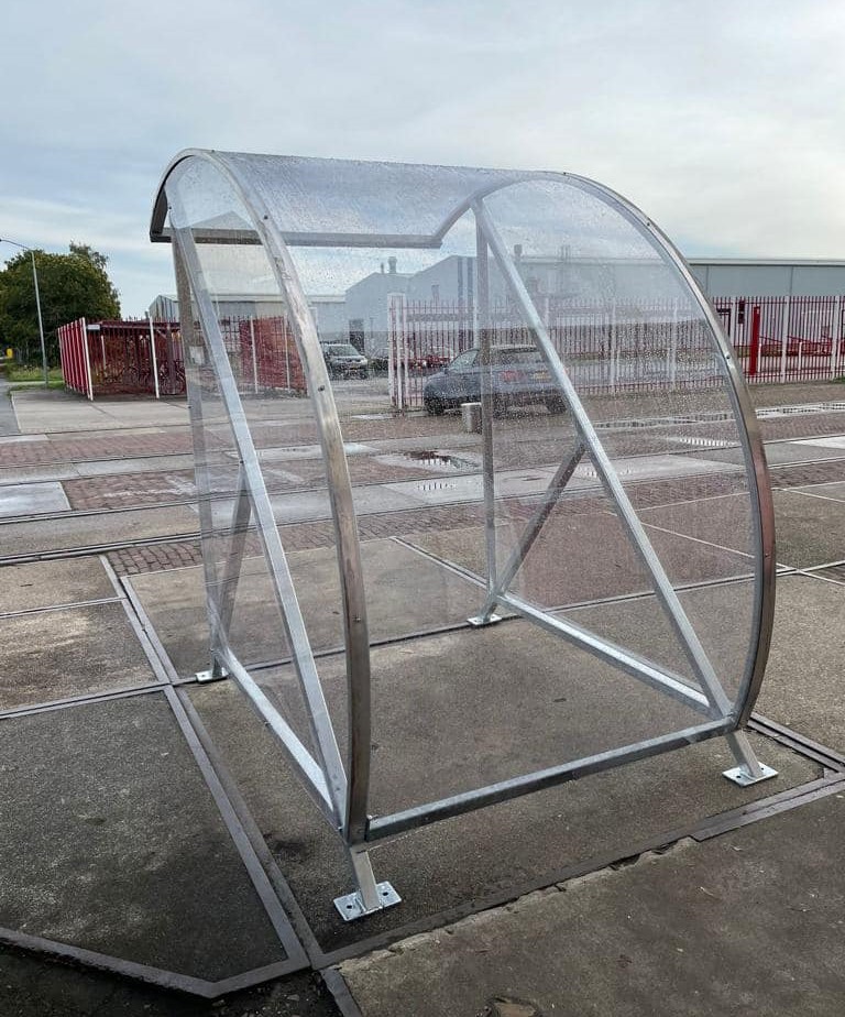Onze BF600 rookoverkapping c.q. rookhok het kleine broertje van onze populaire fietsoverkapping model BF1000