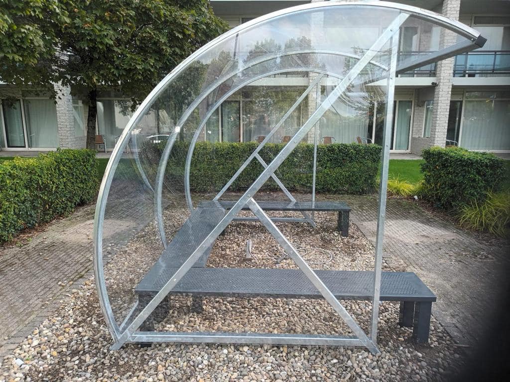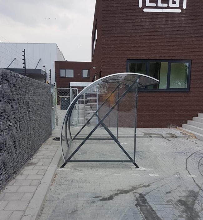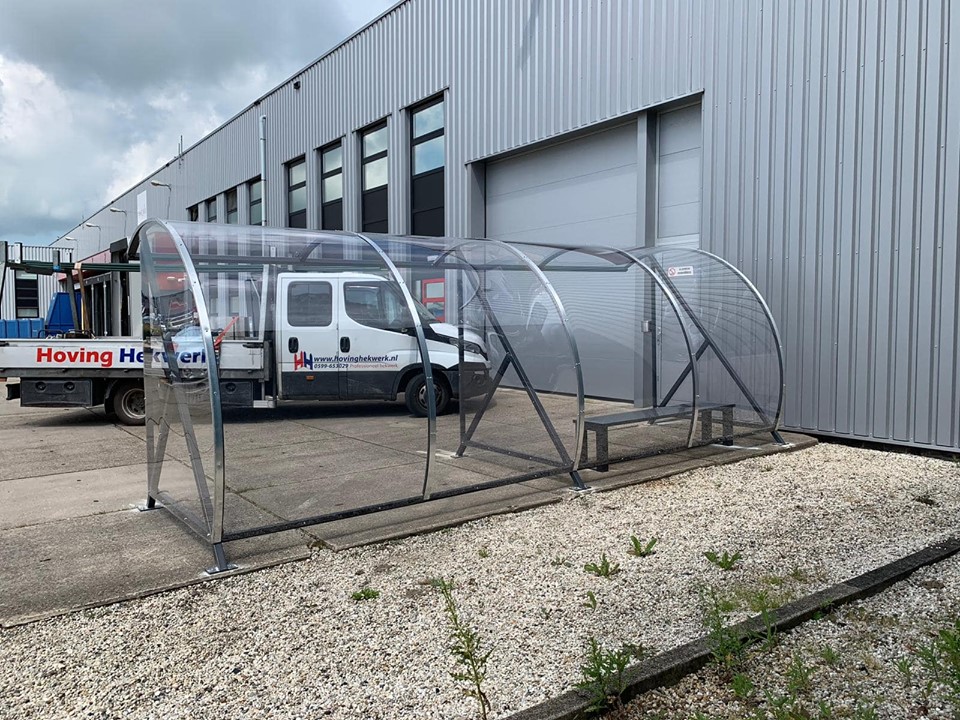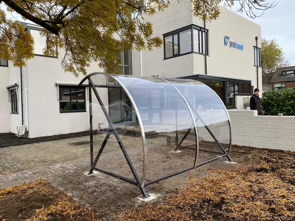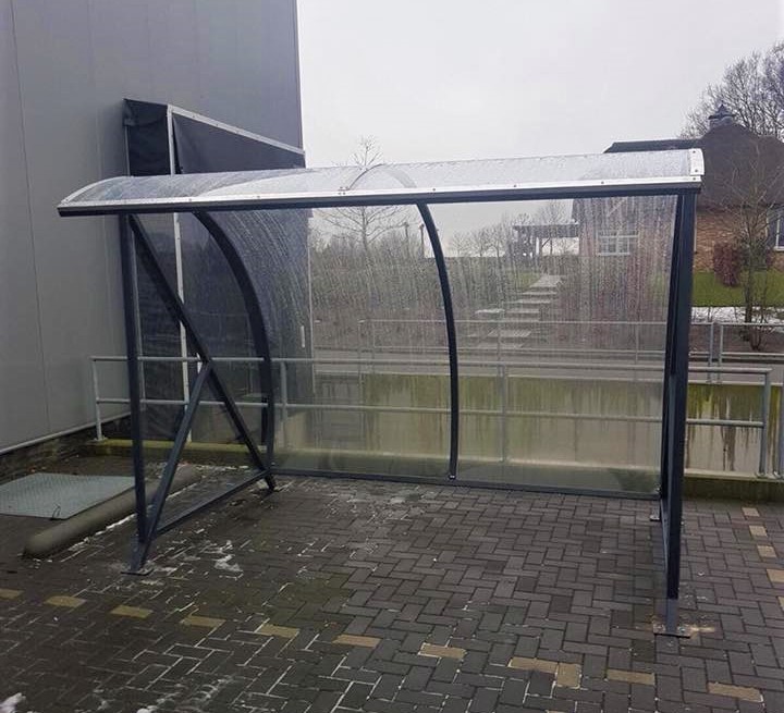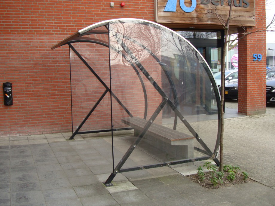 Fraai vormgegeven design en een verrassend voordelige oplossing voor bedrijf, vereniging en particulier. Een ideale rookabri voor bedrijf en industrie. Ontwikkeld als fietsoverkapping model BF1000, betaalbaar, duurzaam en elegant fietsparkeren. Meest verkocht! Door de transparantie geeft deze overkapping de gebruiker een veilig gevoel.