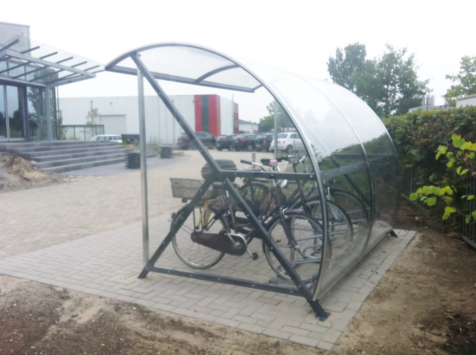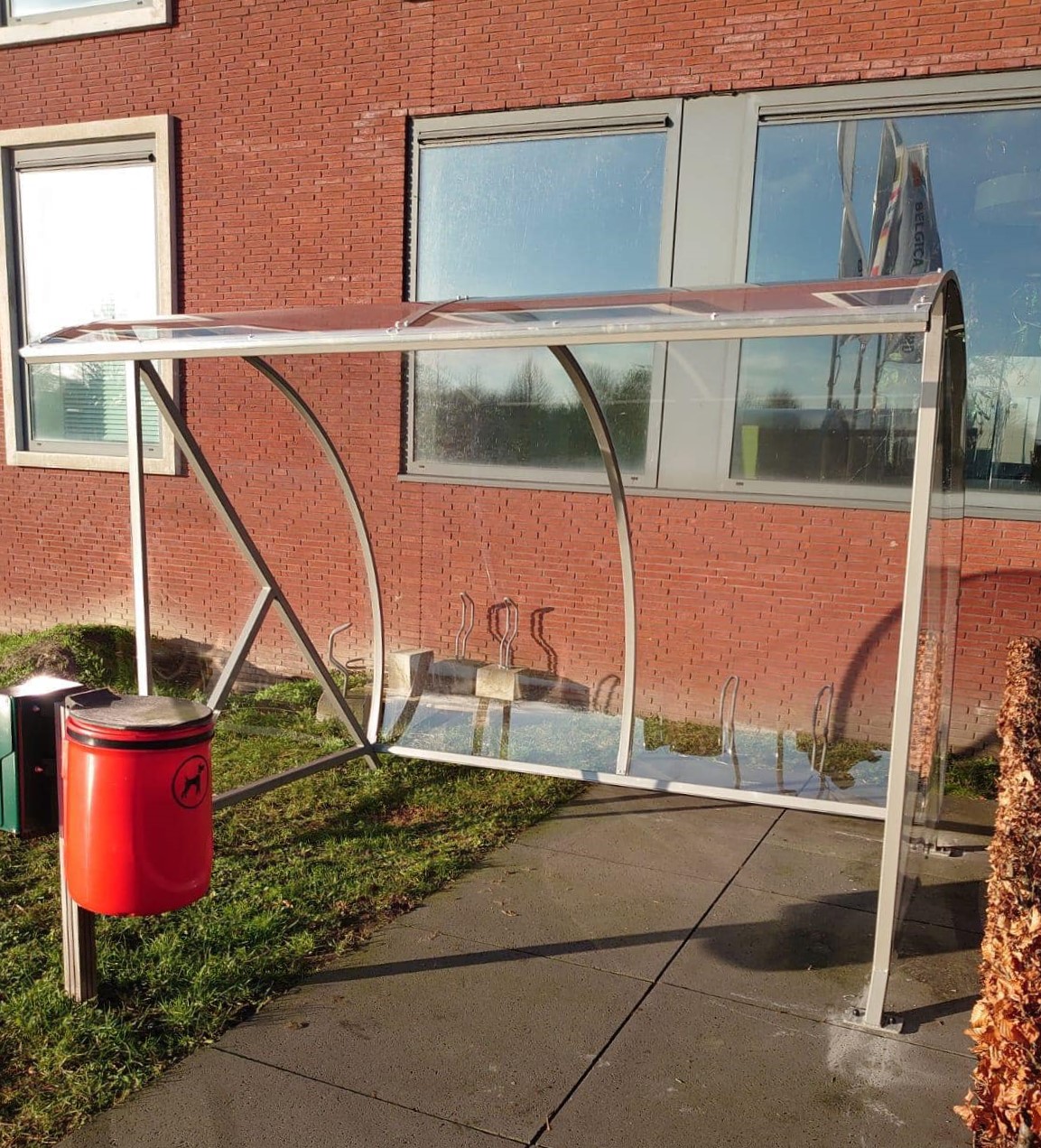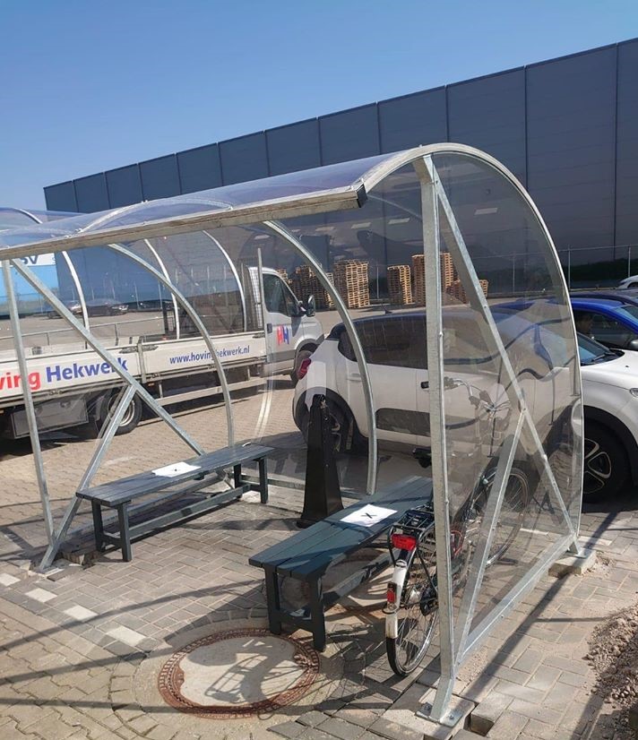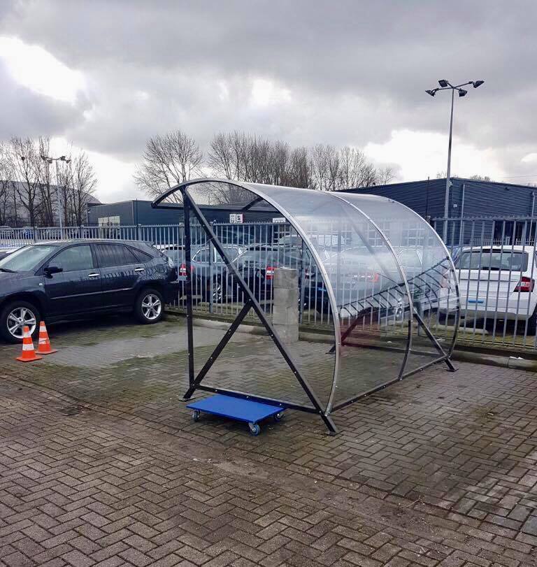 Fraai vormgegeven design en een verrassend voordelige oplossing voor bedrijf, vereniging en particulier. Een ideale rookabri voor bedrijf en industrie. Ontwikkeld als fietsoverkapping model BF1000, betaalbaar, duurzaam en elegant fietsparkeren. Meest verkocht! Door de transparantie geeft deze overkapping de gebruiker een veilig gevoel.