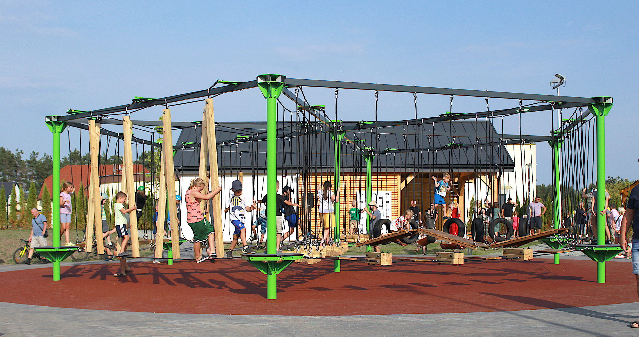 - Veiligheid voorop: De hoogte van de parcoursen overschrijdt niet één meter boven de grond, met een valhoogte van maximaal 1000 mm. Platforms zijn geplaatst op 60 cm boven de grond voor extra veiligheid.