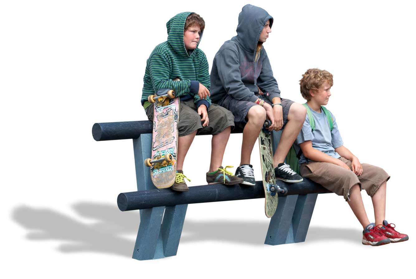 Een modern vormgegeven parkbank ideaal als hang- en skatebank voor uw jeugd