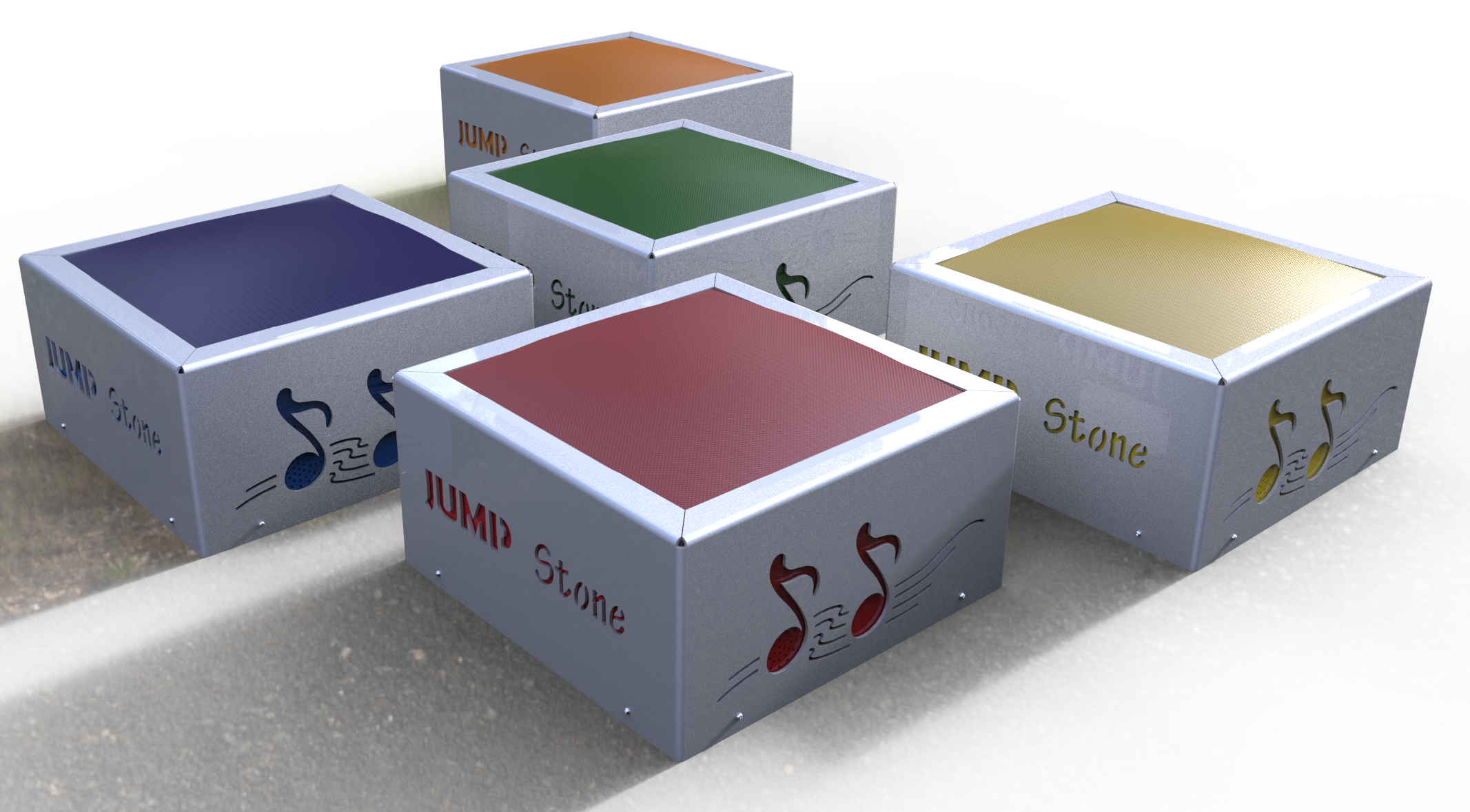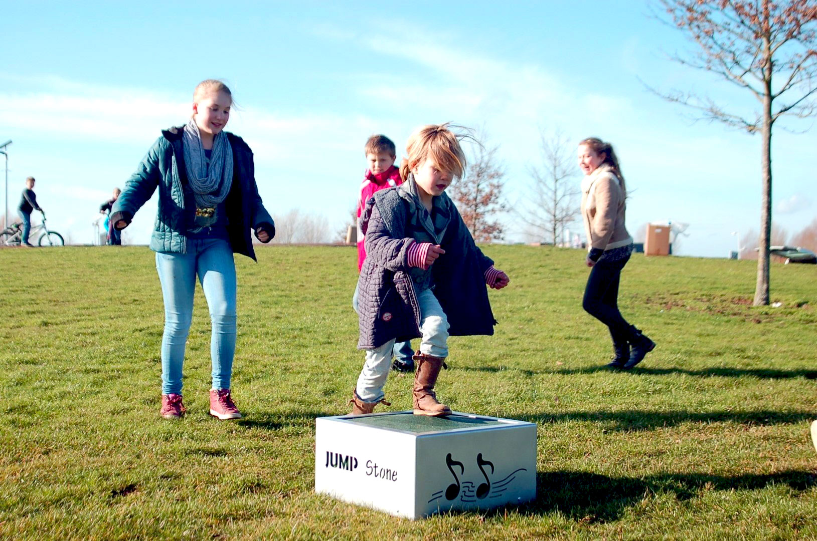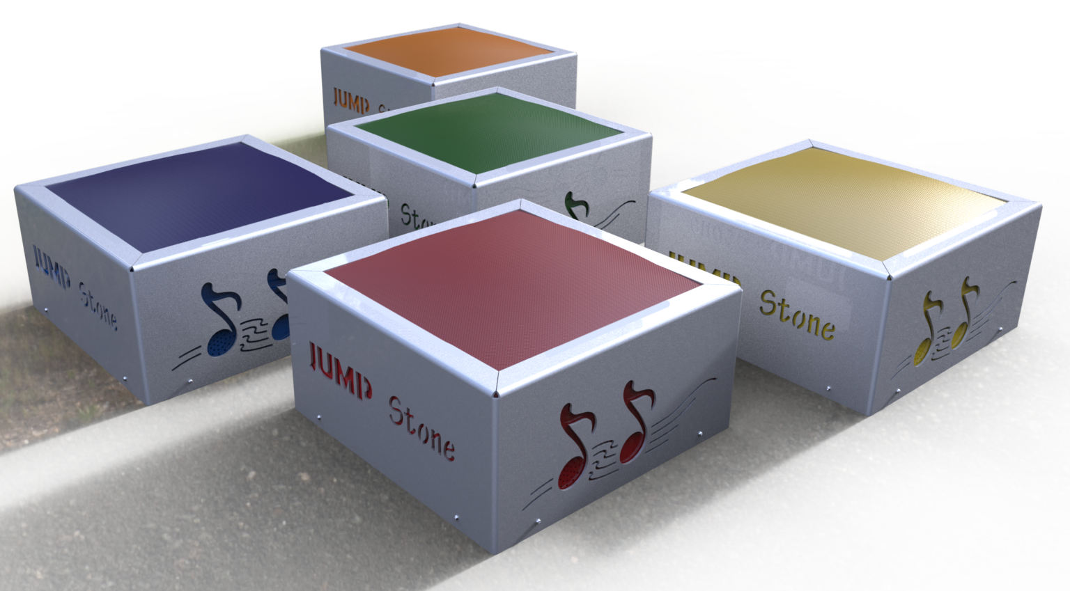 Kinderen wekken door te springen energie op waardoor een willekeurig geluidsfragment vanaf een USB stick wordt afgespeeld. Om de muziek aan de gang te houden dienen de kinderen te blijven springen of onderling af te wisselen. Ook ideaal als buitenfitness toestel voor kinderen.