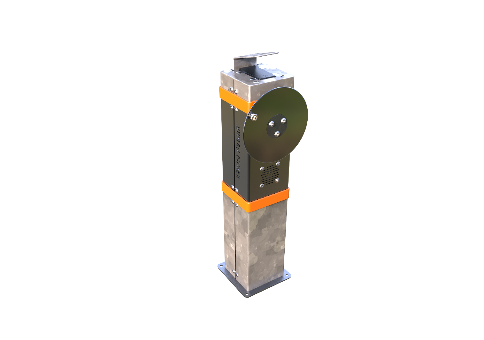 Leuk interactief buiten speeltoestel voor uw schoolplein of kinderdagverblijf. Leg uw smartphone onder het afdakje en draai aan de disc, blijf draaien. Met de opgewekte energie wordt het geluid van de smartphone versterkt. Er hoeft geen verbinding te worden gemaakt met kabels of bluetooth.