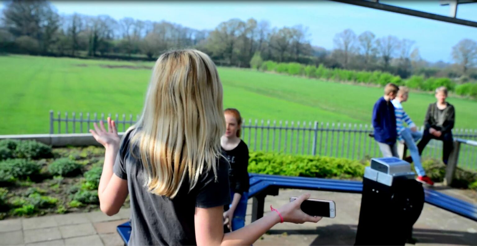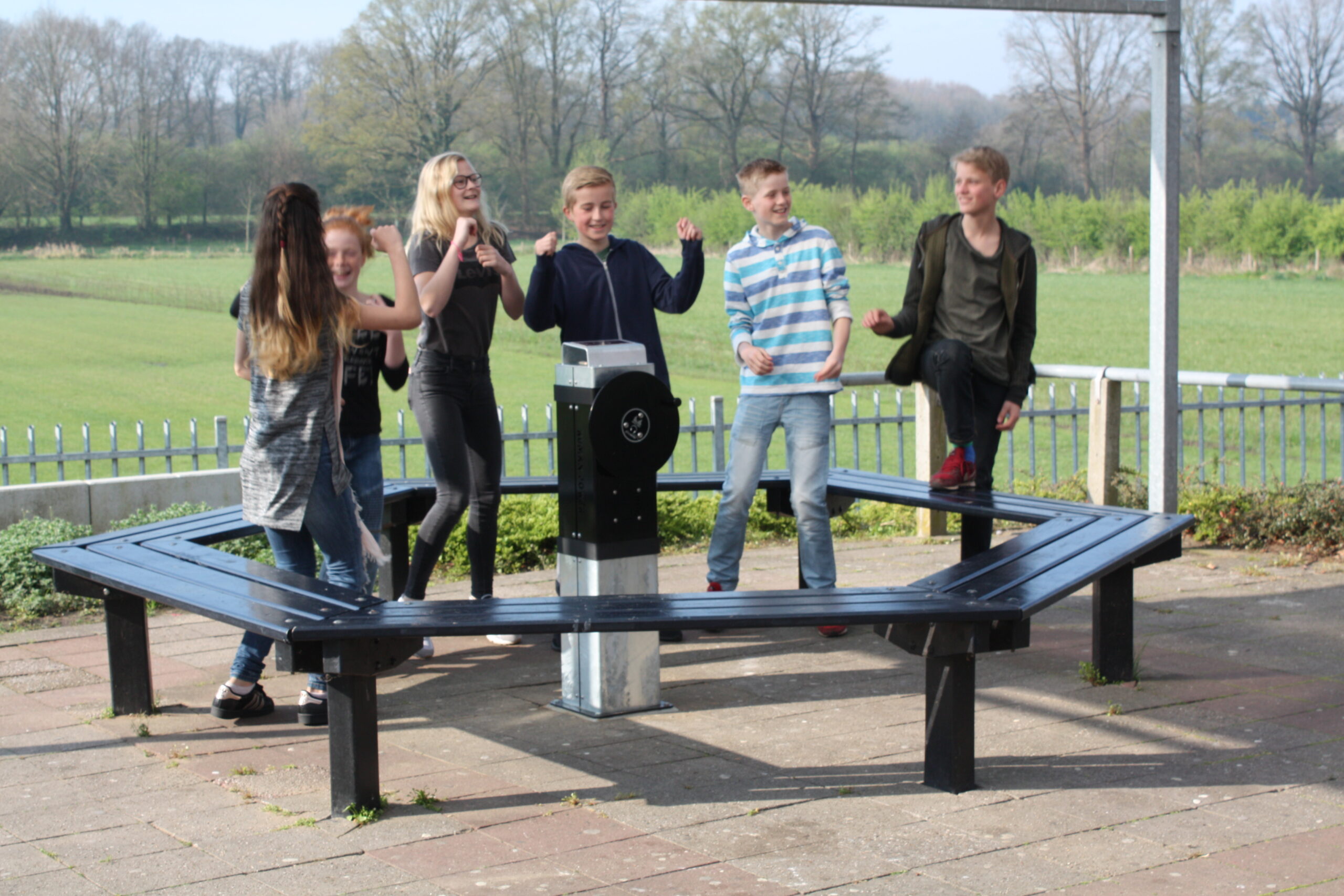 Jongeren luisteren hun eigen muziek op een gave hangplek. Deze DJ paal is mooi te combineren door rondom parkbanken te plaatsen.