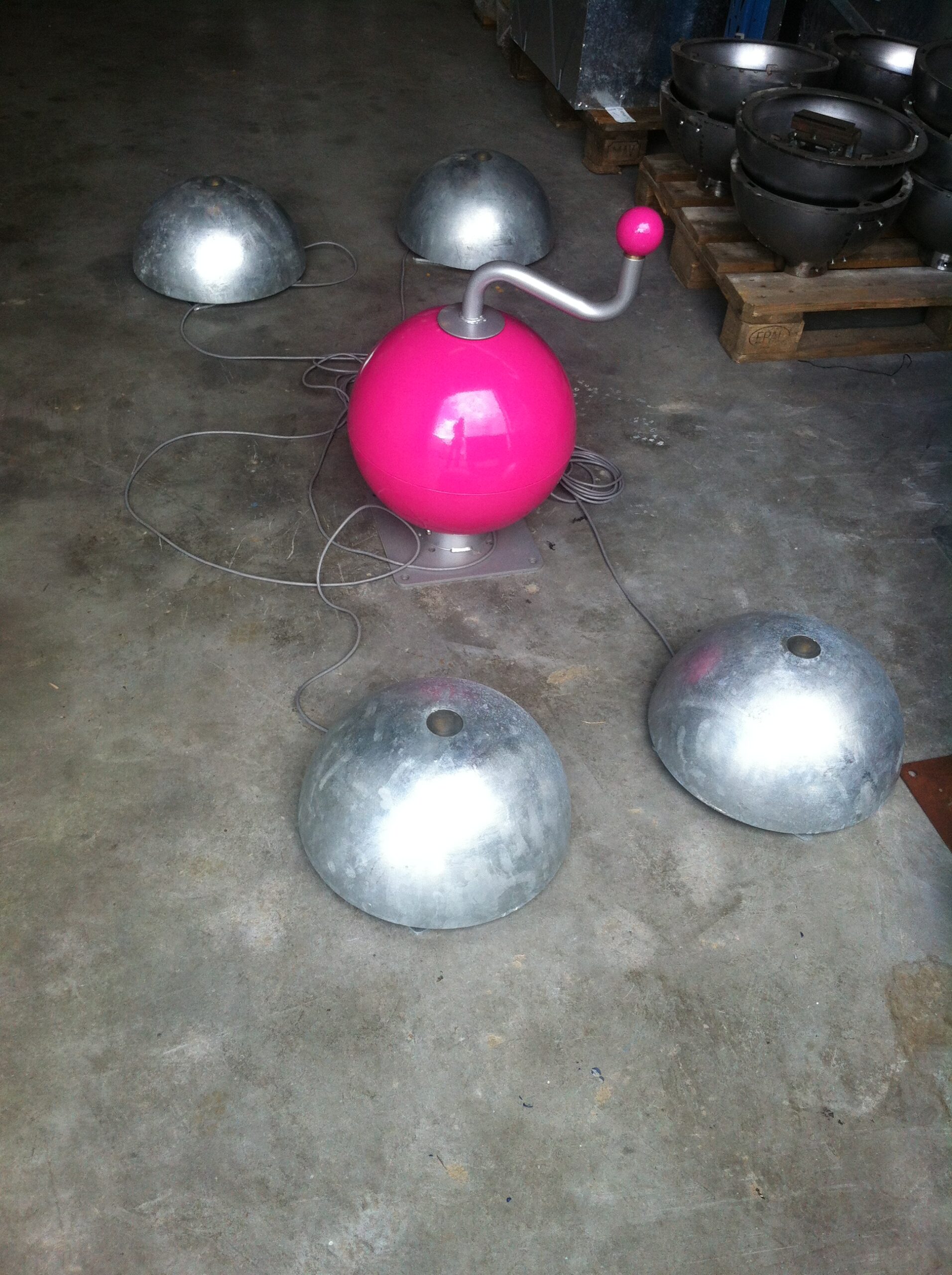 Alleen de centrale bal wordt voorzien van kleur.