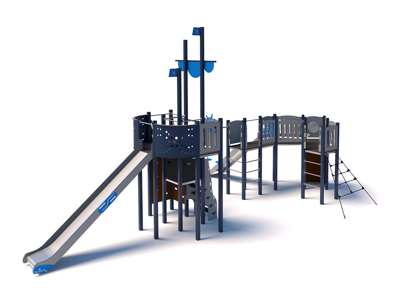 Laat kinderen de horizon verkennen in onze unieke, zee-thema speeltuin! Geïnspireerd door oceaanavonturen, biedt deze speeltuin jonge ontdekkingsreizigers de kans om de zee te veroveren. Met gigantische stuurwielen om de golven te beheersen, uitkijkpunten om nieuwe werelden te ontdekken en spannende glijbanen voor een verfrissend avontuur, wordt elke speelsessie een reis vol opwinding en plezier. Perfect voor kleine kapiteins en avontuurlijke zeelui, deze speeltuin maakt van elke dag een maritiem avontuur!