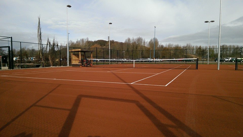 Tennisnetten met enkele topmaas van Pe.