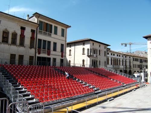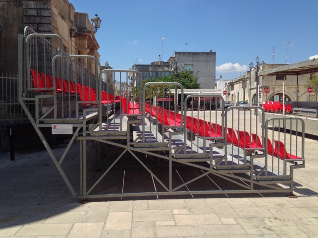 Mobiele tribunes, zeer snel op te bouwen en af te breken.