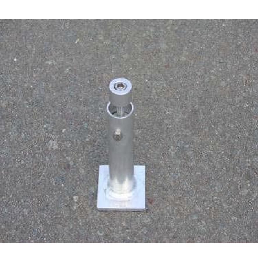 Bodemverankering voor harde bodems, zonder draadbus. Door middel van een haak-systeem en een sterknop wordt de grondpot vast gedraaid, zodat uw zaaldoel eenvoudig deugdelijk bevestigd wordt.