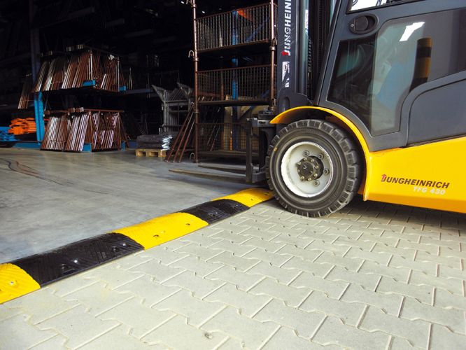 Met deze 50 mm verkeersdrempels van gerecycled materiaal voor 20 km/uur creëert u eenvoudig een veilige werk en woonomgeving. Voorzien van reflectoren, zodat deze ook s' avonds goed zichtbaar zijn. Ook geschikt voor zwaar verkeer.