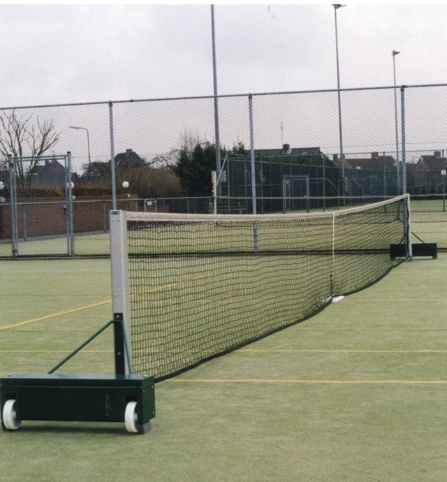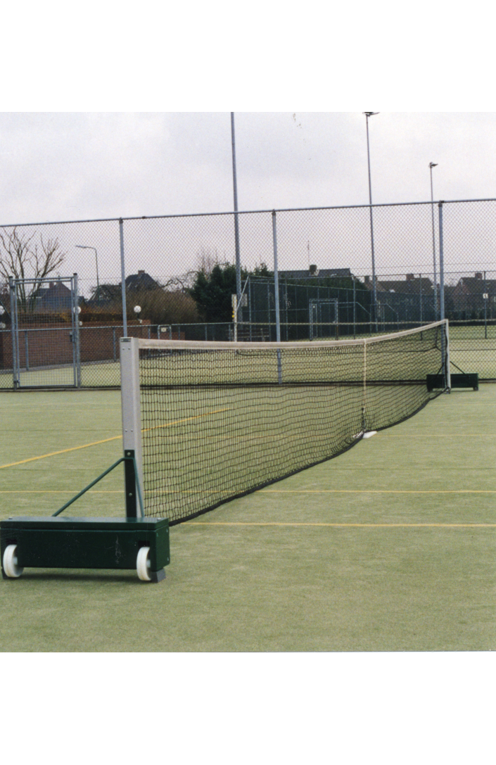 Aluminium koker netpalen van uitermate solide kwaliteit. Deze palen zijn gemakkelijk te verplaatsen, omdat ze voorzien zijn van grote wielen. Voorzien van een aluminium kabelschijf en contragewichten van 125 kg elk, waardoor een hoge netkabel-spanning verkregen wordt.