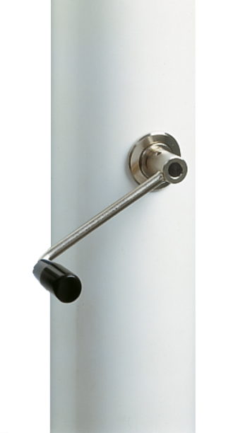 Het hijskoord zit achter het slot in de mast en de sleutel en zwengel bergt u ergens anders op.