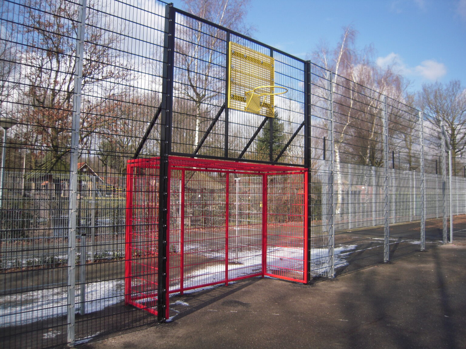 Een onverwoestbare voetbaldoel – basketbalcombinatie voor speel en schoolpleinen.