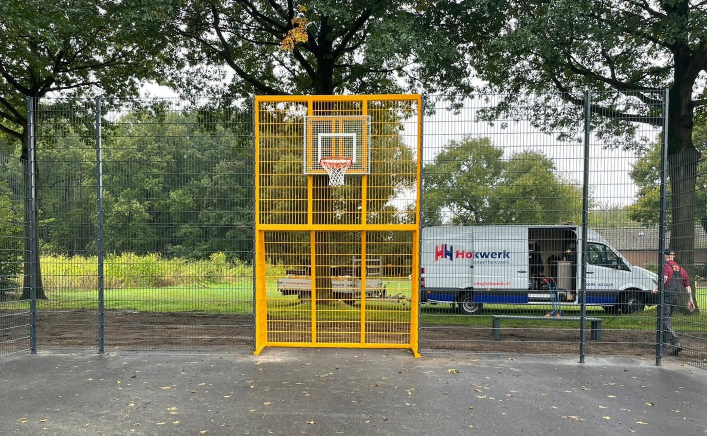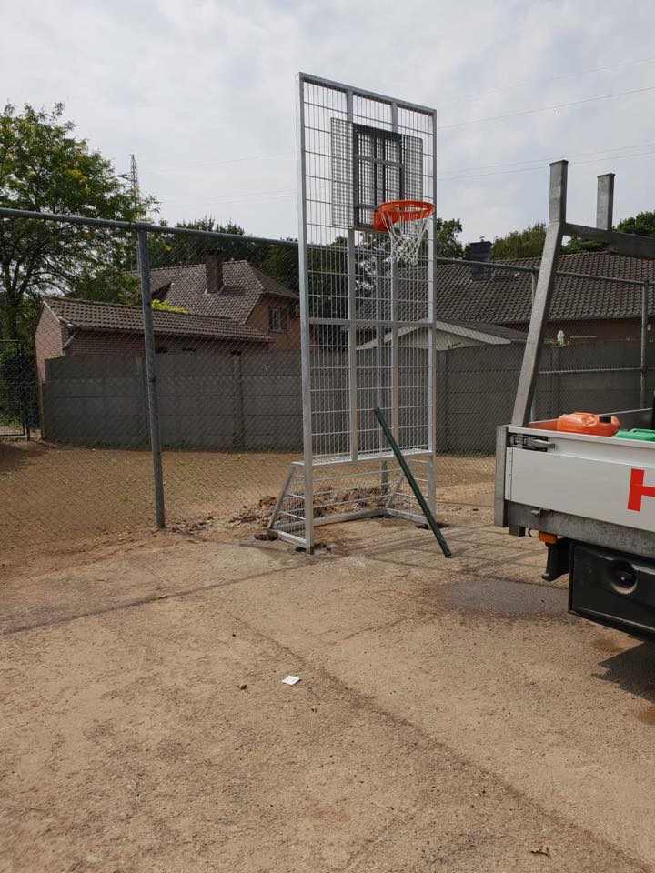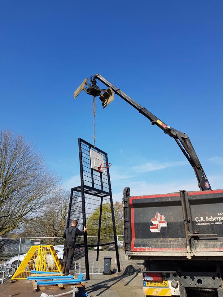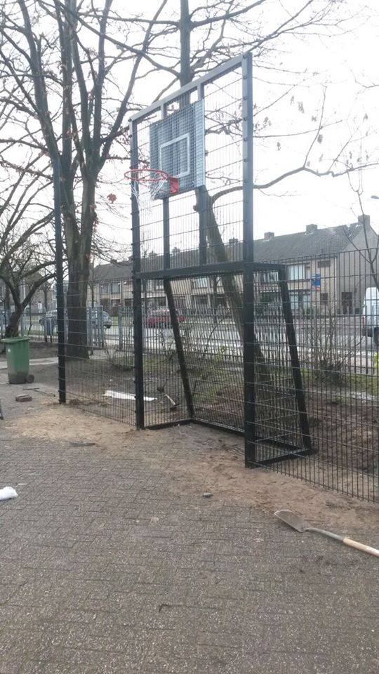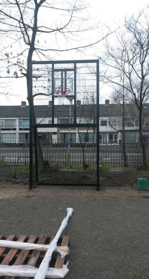 Gereed voor transport. Aan de bovenzijde, komt het vandalisme-arme basketbalbord.