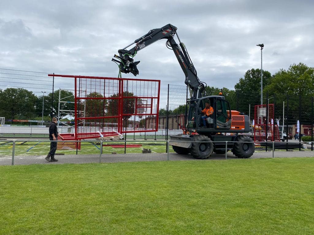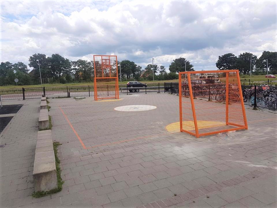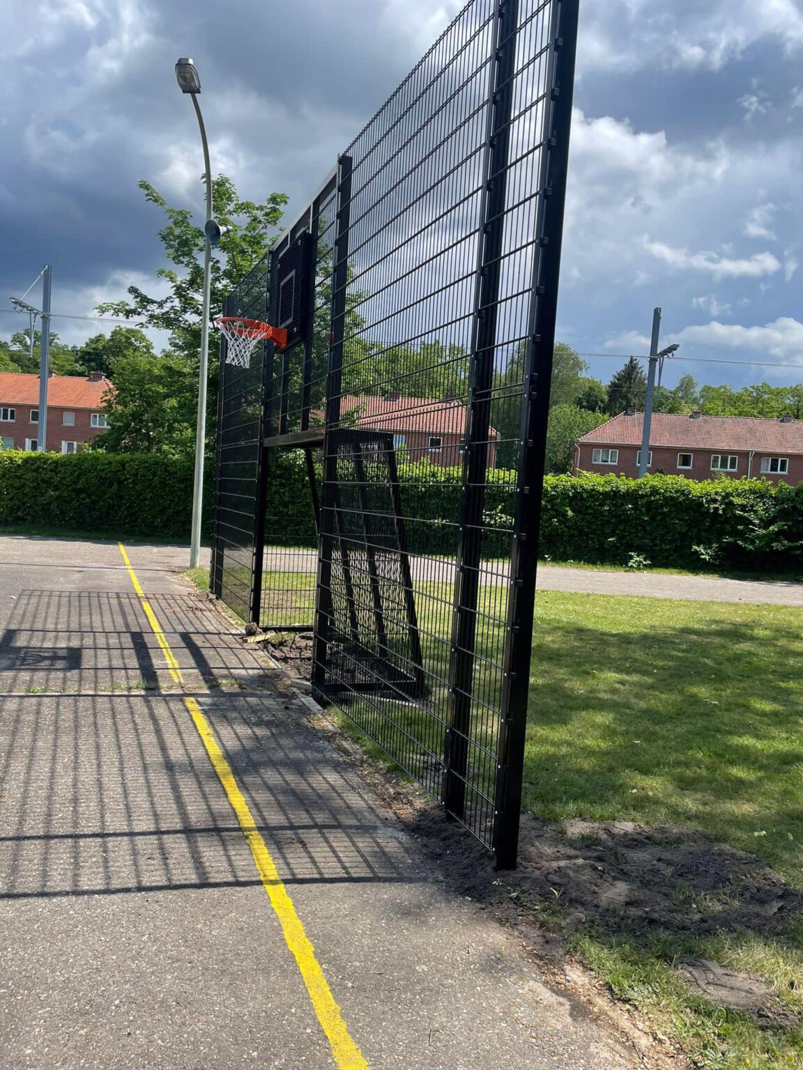 Gereed voor transport. Aan de bovenzijde, komt het vandalisme-arme basketbalbord.