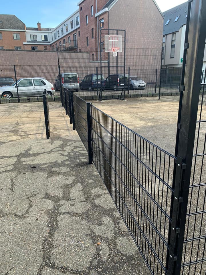 Voordelige oplossing voor pleintjes, buurthuizen, scholen, etc. Opgebouwd uit zware panelen met DSM-vulling. Gepoedercoat in fraaie ral kleuren van uw keuze.
