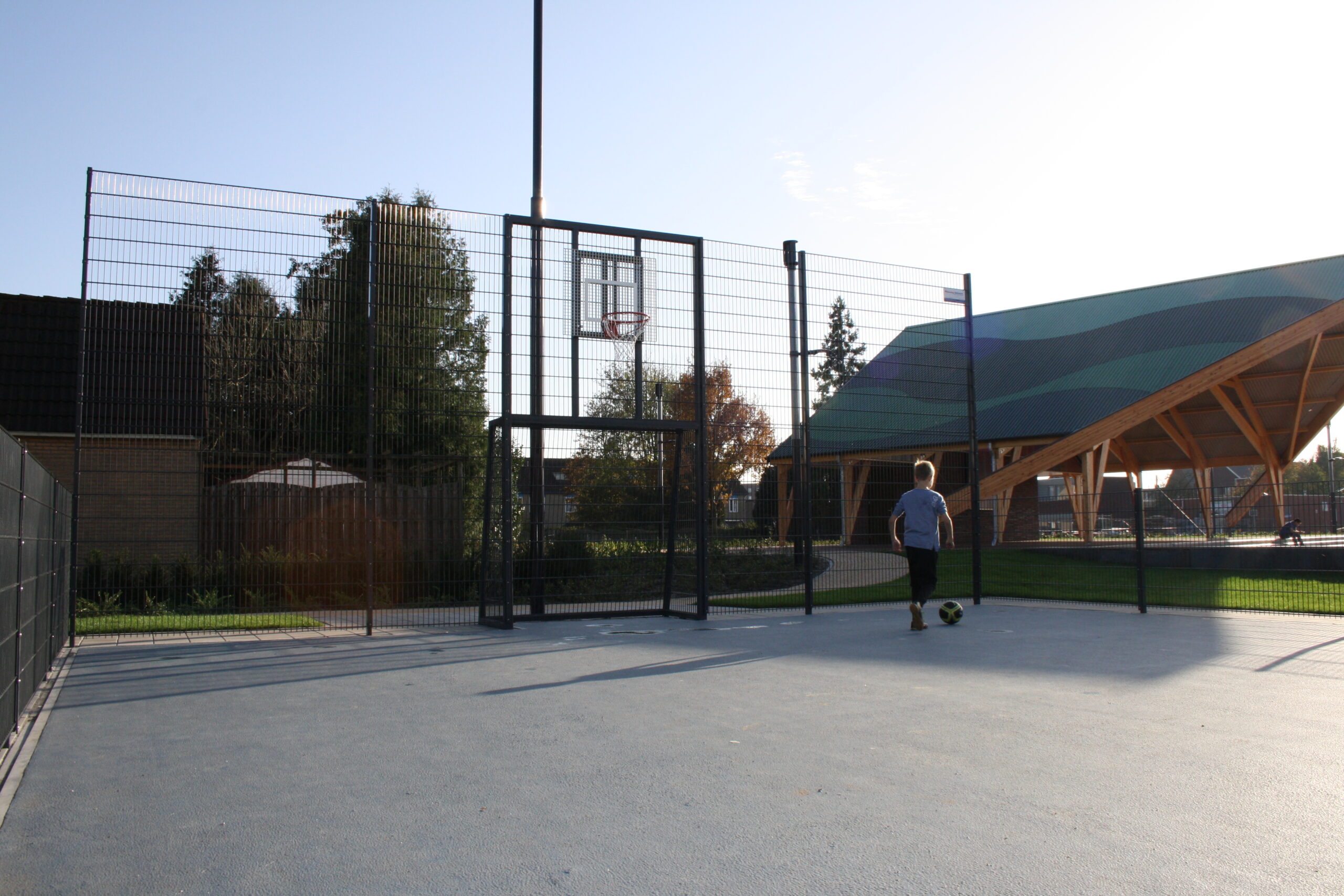 Een onverwoestbare voetbaldoel – basketbalcombinatie voor speel en schoolpleinen.