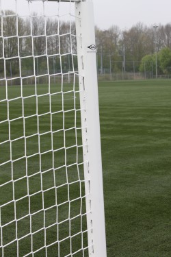 Door de gefreesde nethaken en het aluminium sluitprofiel is het kantkoord van de doelnetten volledig weggewerkt in het voetbaldoel. Een bijzonder fraaie en duurzame oplossing.