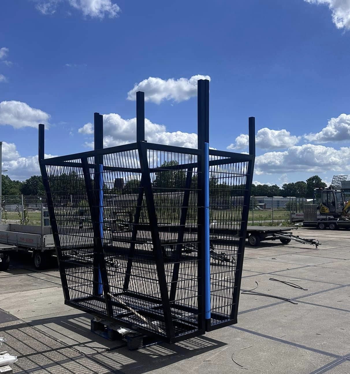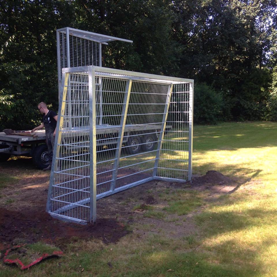 - Voor de grotere uitvoeringen kunt u ook kiezen voor het verlengen van de staanders, zodat u deze desgewenst in kunt betonneren (Afbeelding met de grote blauwe voetbaldoelen onder). *Dit kunt u gewoon bij uw bestelling als opmerking vermelden.