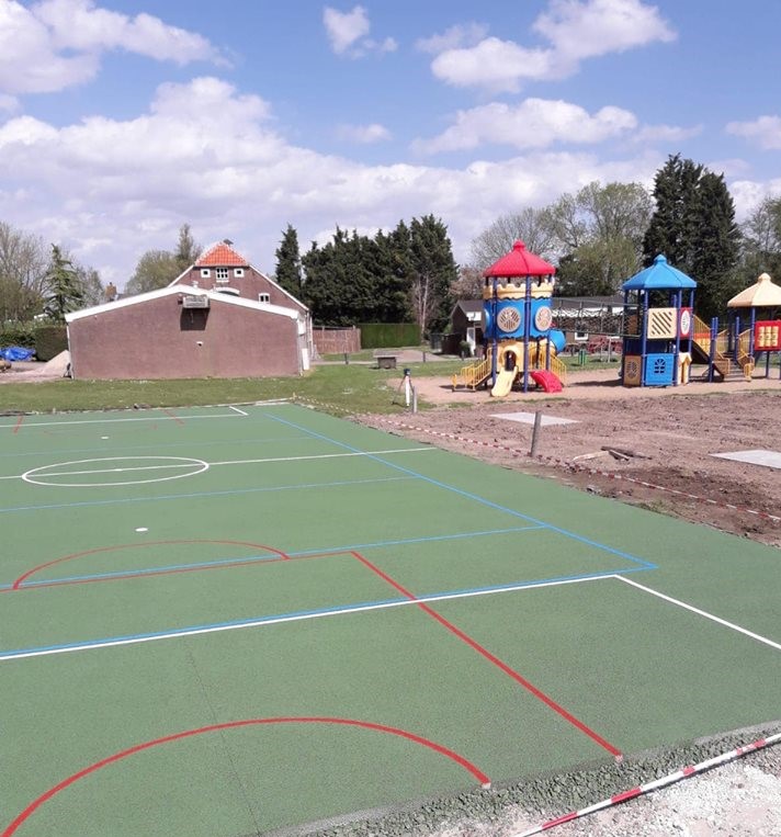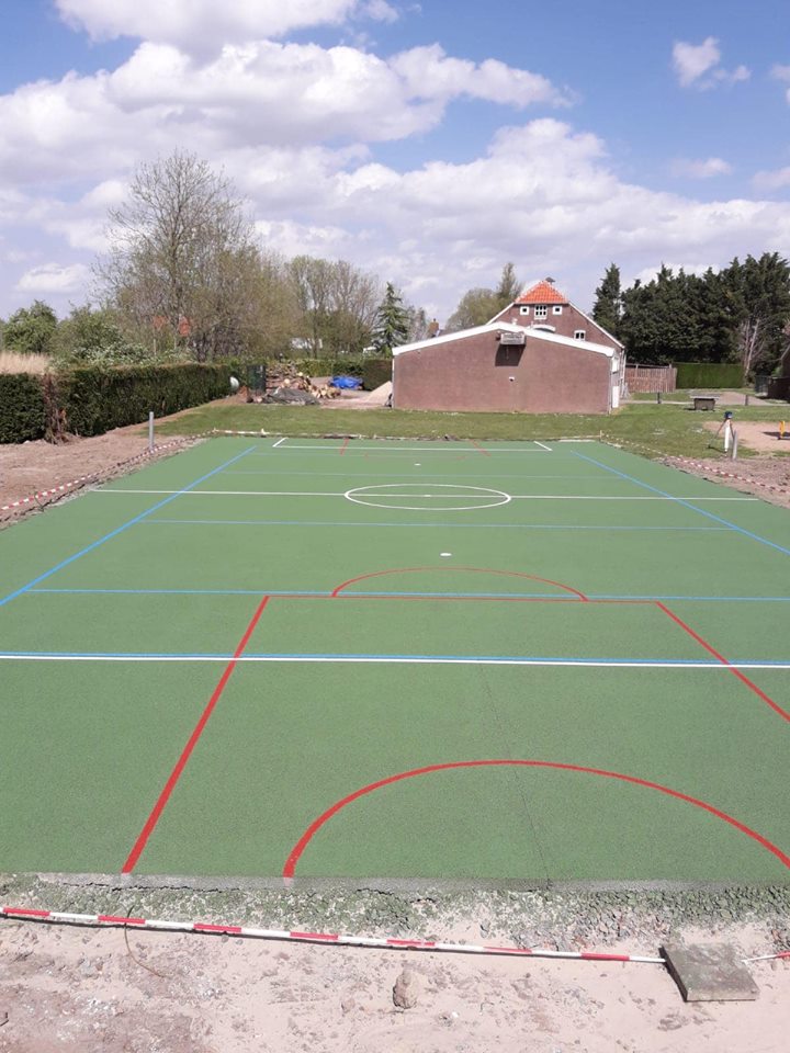 Tennis, basketbal, voetbal, allemaal sporten waar deze waterdoorlatende vloer zich uitstekend voor leent. Dus ideaal ook voor pannakooien, pannavelden en voetbalkooien.